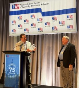 Former FLISA Executive Director Tom Madden was honored during the NAFIS Fall 2025 Conference during the second general session. Tom was recognized as not only a leader of FLISA but also a founding member responsible for the organization's creation and prominent role in the impact aid community. Dr. Madden's legacy of mentoring, leadership, and good humor were on full display during the conference and commented on during the presentation. Tom's legacy lives on in our schools and our organization. The Elvis of impact Aid.